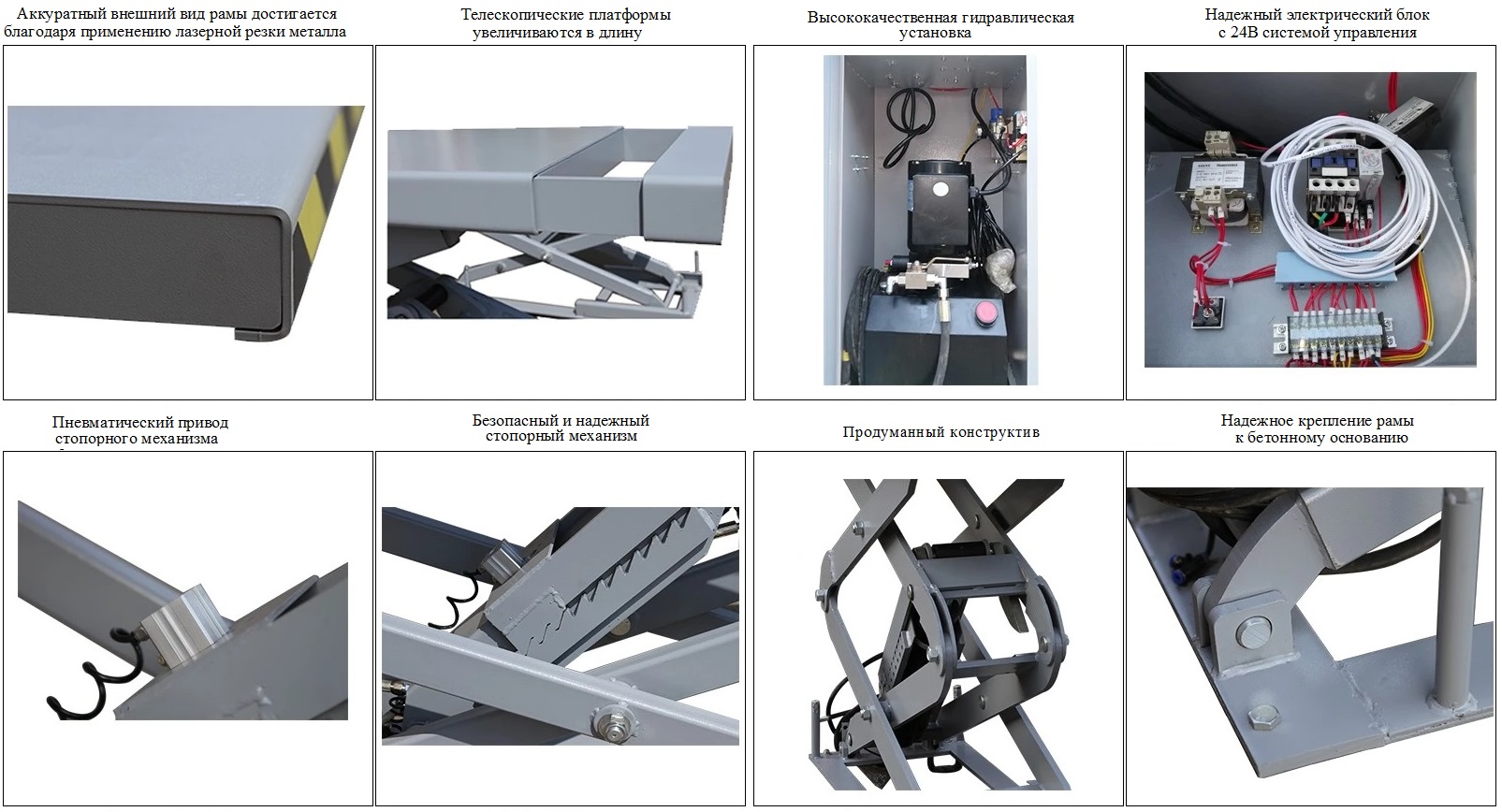 • Эффективная многоуровневая система безопасности, удерживающая платформы подъемника в случае обрыва гидравлического шланга.