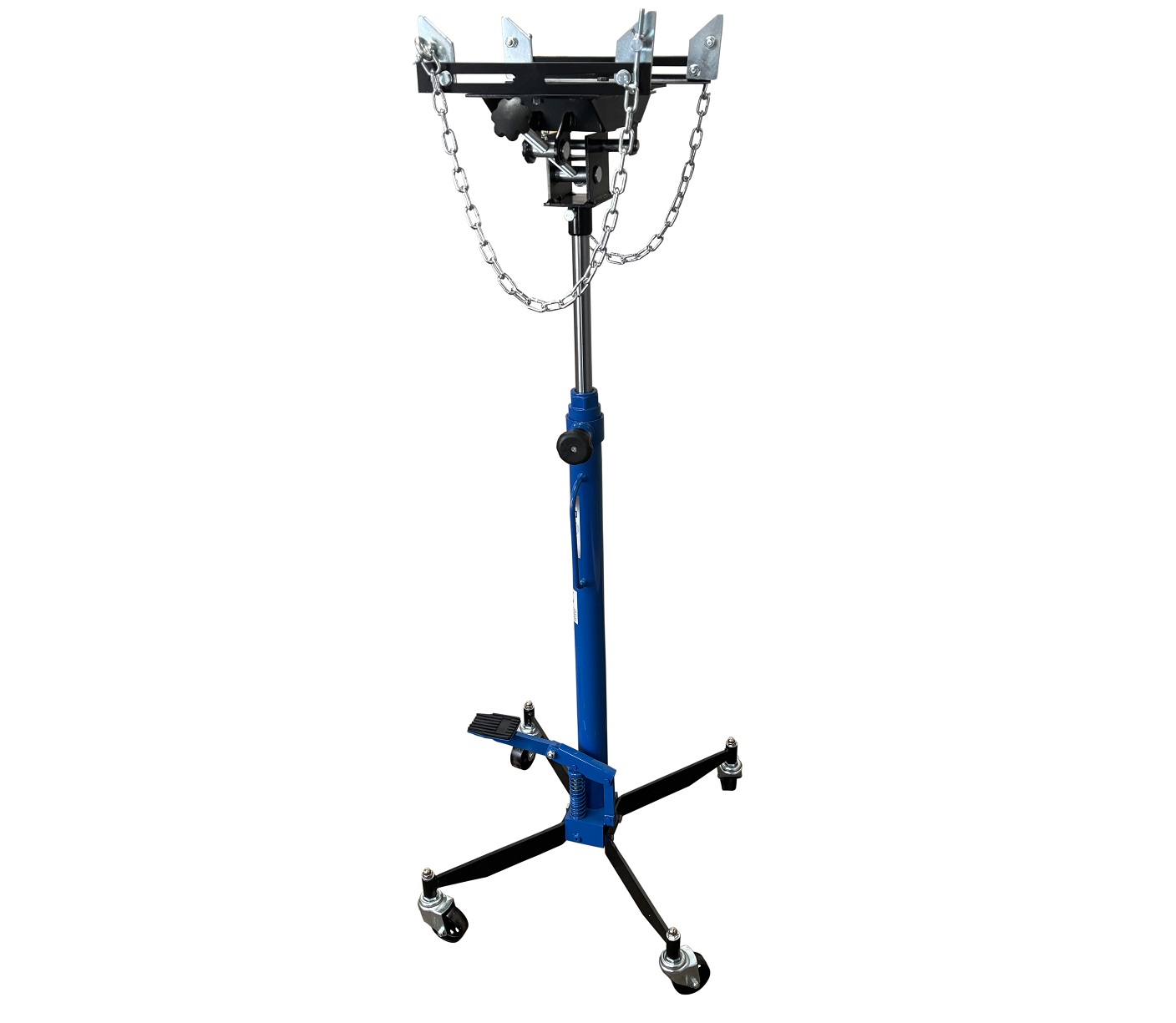 Хромированный шток – 30 мм. Цилиндр с клапанным блоком и возвратной пружиной. 2 ручки для перемещения. 4 поворотных колеса с подшипниками обеспечивают легкость перемещения. Удобная педаль подъёма с резиновой накладкой. Для монтажа и демонтажа узлов трансмиссий, тормозных суппортов и других агрегатов автомобиля, или технического обслуживания.